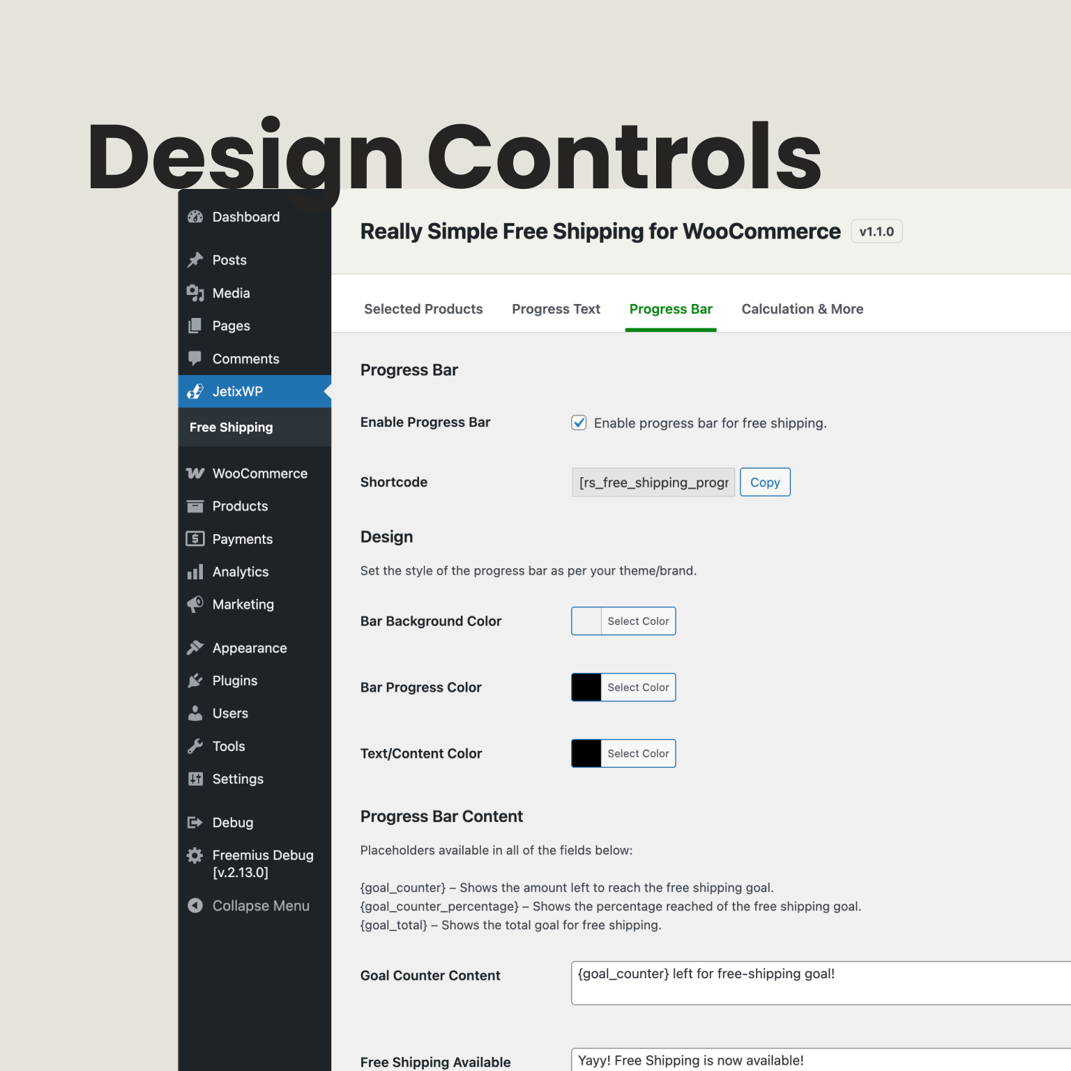 Add Free Shipping on Selected Products, Progress Bars and Counters for WooCommerce sitewide. Get better conversions, next level customer experience and more all with this one single plugin.